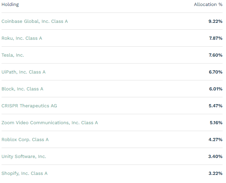 ARKK is a fund that actively manages investments in global companies benefiting from or involved in disruptive innovation, aiming for long-term growth.