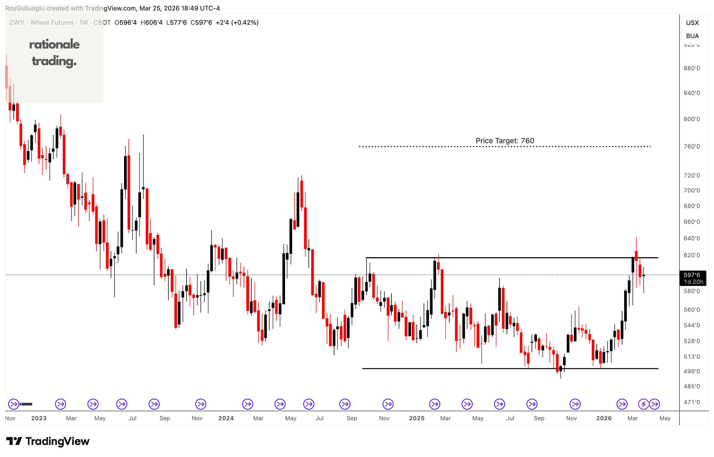 Based on this chart pattern, the potential price target is approximately 760 levels.