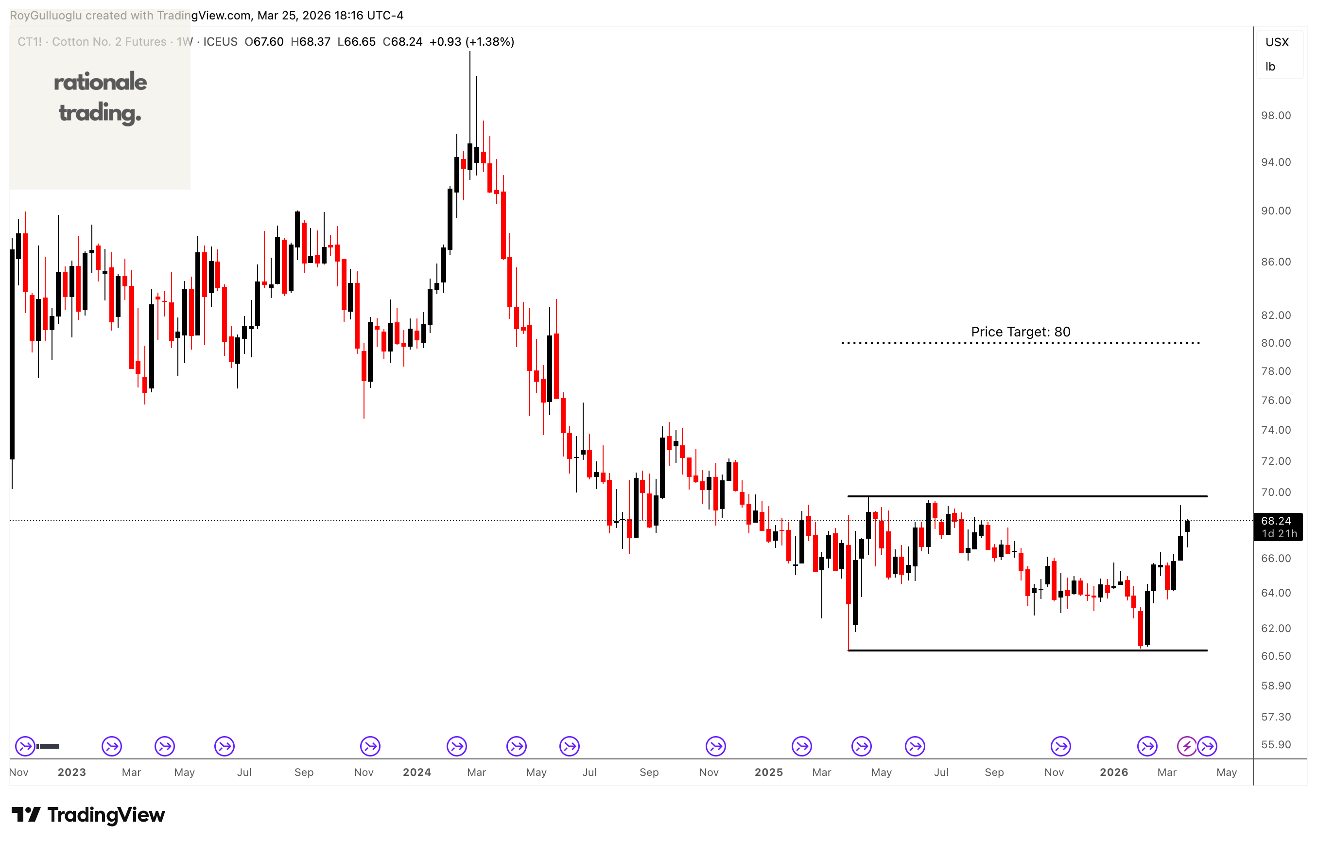 Based on this chart pattern, the potential price target is approximately 80 levels.