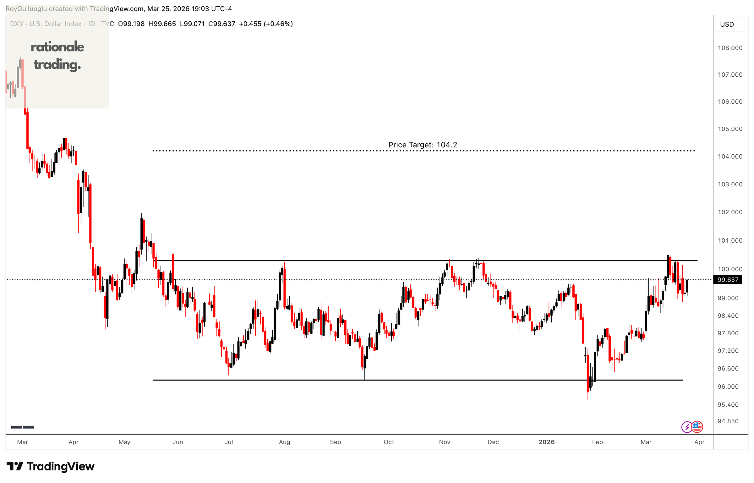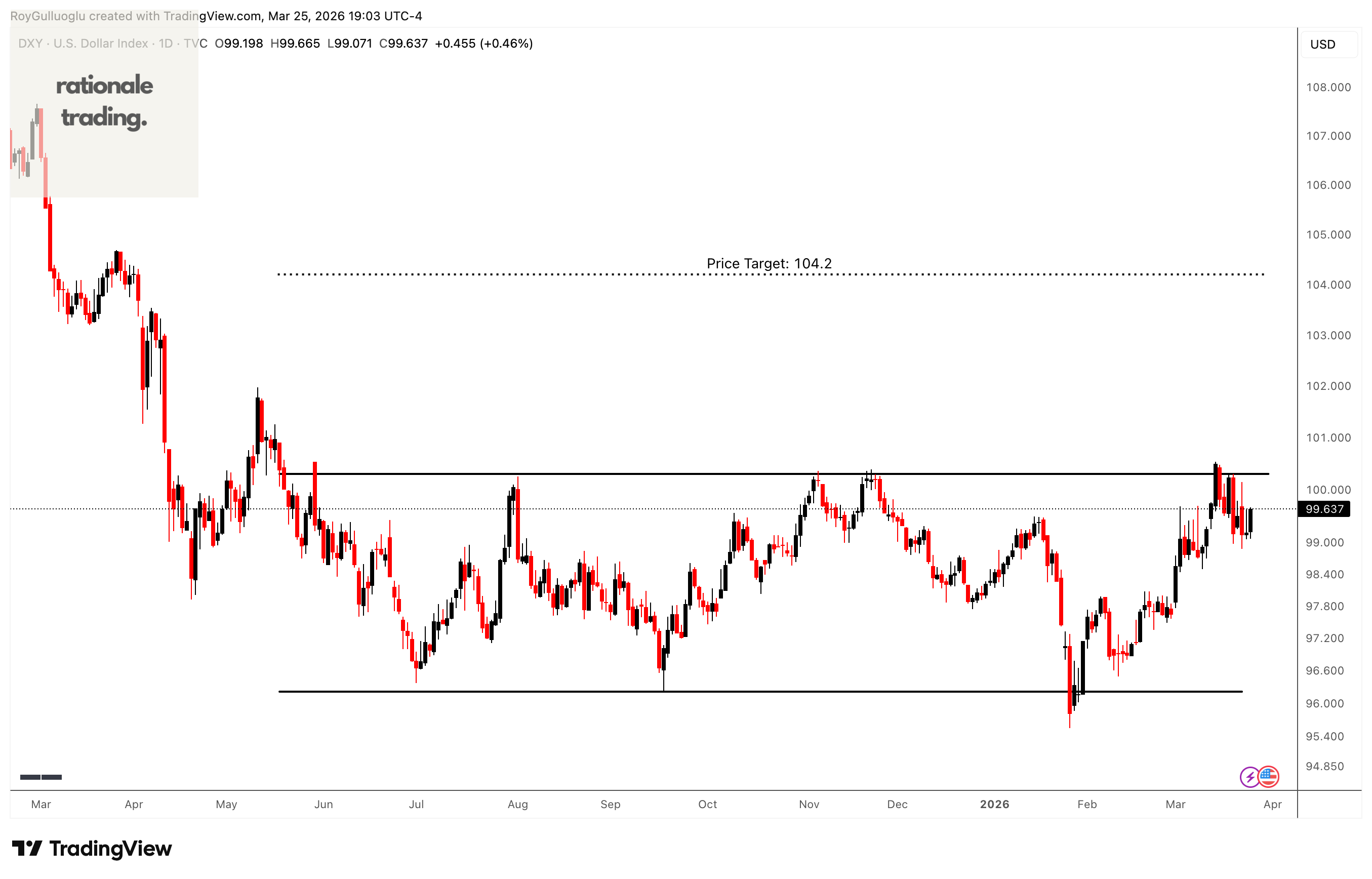 Based on this chart pattern, the potential price target is approximately 104.2 levels.